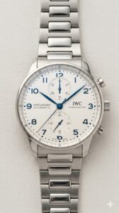 もともと航海用の高精度時計をルーツに持つポルトギーゼは、知的で落ち着いた雰囲気を持ちながらも確かな存在感を放つモデル。