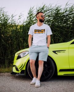 未来的なデザインのEVや欧州コンパクトカーには、余計な装飾のない“ミニマルTシャツ”がしっくりきます。