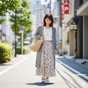 あくまで抜け感を保ちつつも、素材や小物で大人の余裕を見せるのがポイントですね!