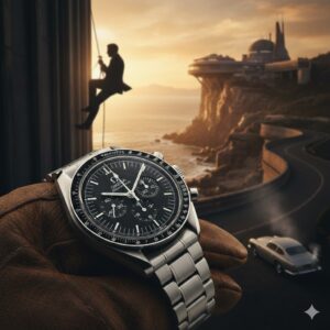 通称「ムーンウォッチ」として知られるスピードマスターは、ボンドのミッションシーンにもぴったりのクラシックモデル。