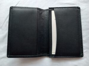 名刺入れ自体にもロゴが入っていないので、たぶん、そこまで高いものではなくて無名の汎用のものだと思います。