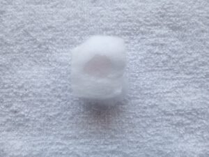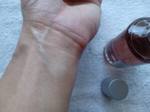 スプレー式なので、ガーゼに一吹きして「色合い」と「香り」を確かめます。