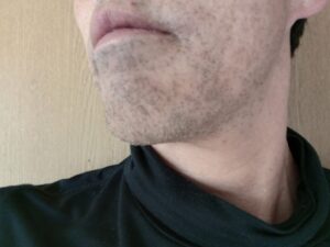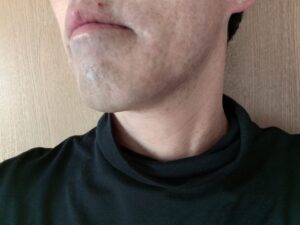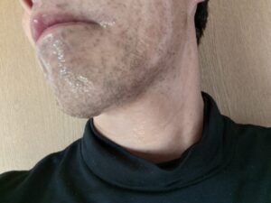 ジェルの潤いのせいか、余計に髭が濃くなったように見えますね。