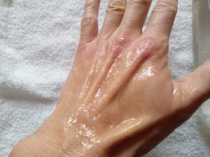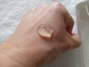 でもこのジェルはそれがほとんどなくて、しかもすぐに乾いて肌に馴染んでいくので、もうこの時点で「使えるな」という確信を得ていました。